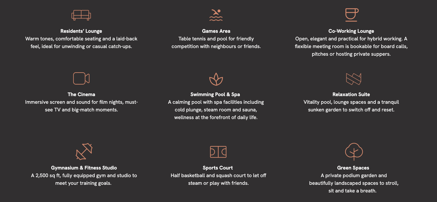Development highlights Home to a line-up of resident amenities you’d expect from a five-star hotel. A club designed for wellness and community, stylish, functional and genuinely useful.